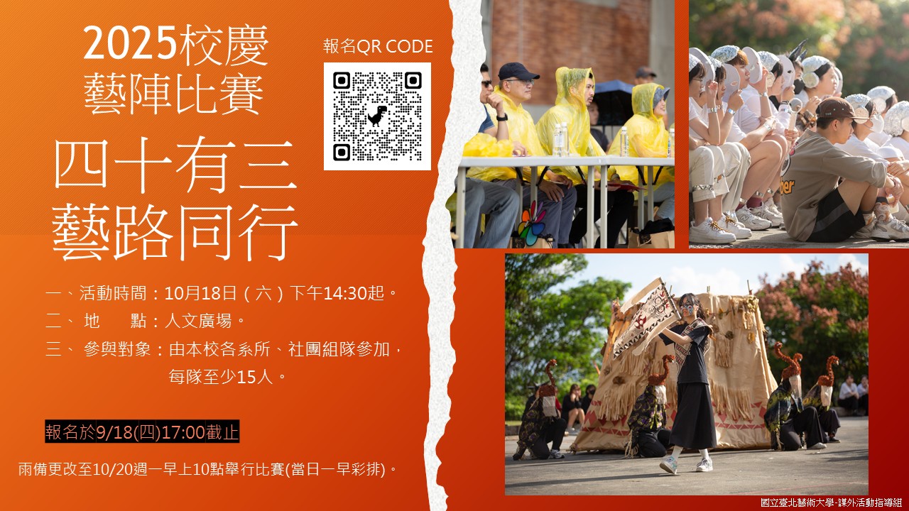 活動時間:2025年10月18日(六)下午14:30起。(早上彩排,下午比賽)